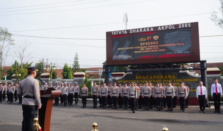 Kapolres Ciamis AKBP H. Hidayatullah, S.H., S.I.K., menyampaikan apresiasi dan terima kasih kepada personel yang telah menjalankan tugas secara profesional dan menjaga integritas selama berdinas. Ia menegaskan bahwa pemeliharaan keamanan dan ketertiban masyarakat merupakan tugas pokok Polri yang harus dilaksanakan melalui langkah preemtif berupa imbauan, preventif melalui patroli, serta represif dalam bentuk penegakan hukum yang berkeadilan.